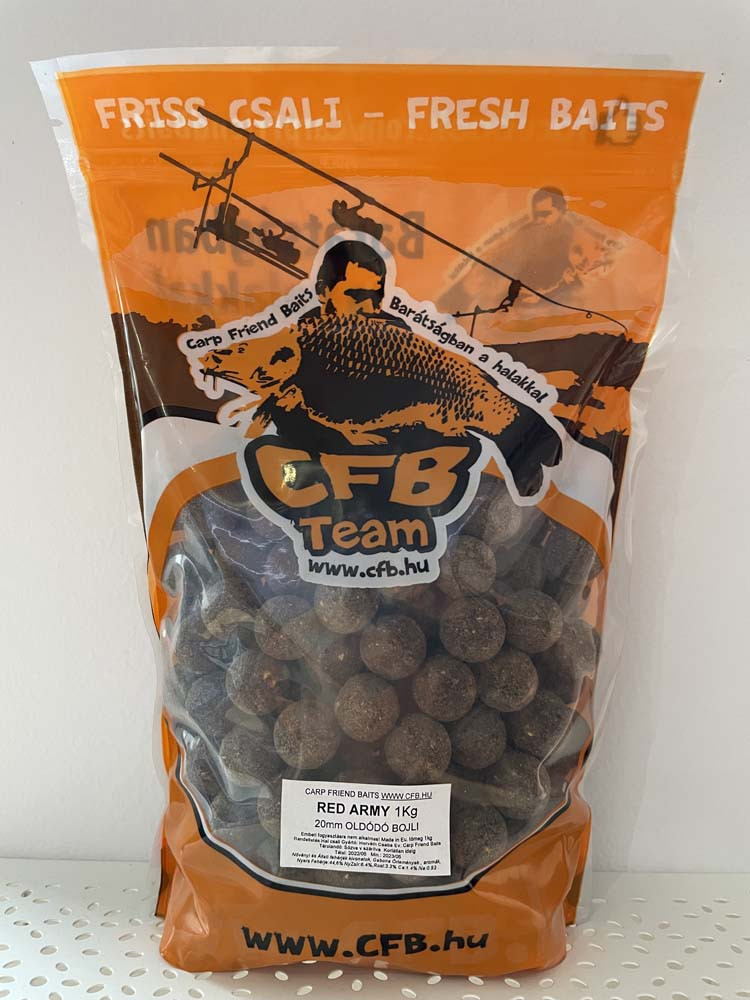 Egy igazan fűszeres, csípős bojli, mely olvadástól használható amíg a szezon tart. A Red Army bojli alapját vízben oldódó fehérjék, hallisztek, egyéb állati fehérje kivonatok valamint a saját készítésű rendkívül vonzó fűszerkeverék egészíti ki. A bojlival való első találkozáskor már érezni lehet a felhasznált anyagok minőségét, azt a fűszeres, csípős ízt. Mint minden CFB bojlit, a Red Army golyókat is száraz, hűvös helyen ajánlott tárolni, napfénytől védetten, így sokáig megőrzik frissességüket.