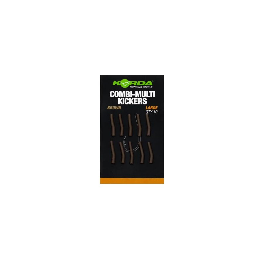 A Korda Combi Multi Kicker Green M/L - horogbefordító zöld színben M-es vagy L-es méretekben, melyet Darrell Peckkel közösen terveztek. Ezek a gumirúgók a jól dokumentált Combi Multi Rig elengedhetetlen részei. A Wide Gape horogmintával való használatra alkalmasak, ezek a kickerek nem csak a horog szárát hosszabbítják meg, hanem a Combi Multi Rig fonott, gyorsan cserélhető részét is a helyén tartják. A horog cseréjéhez egyszerűen csúsztassa vissza a rugót, hogy a hurok kioldódjon. Ha a friss horog a helyén van, csúsztassa vissza a kickert a szemen, hogy a horogcsali a kívánt pozícióban rögzüljön. Darrellhez hasonlóan, ha a „zsinórigazító” technikát szeretné használni, egyszerűen szúrja át egy csalitűvel a puha gumit, és húzza át a fonott részt.